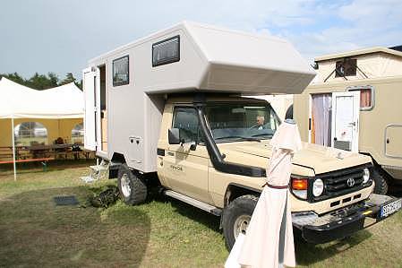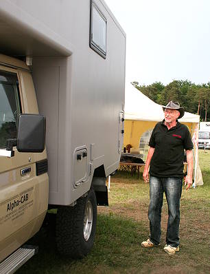 Seine Firma ist als Spin-Off eines anderen namhaften Unternehmens der Branche entstanden und stellt sehr stabile Expeditionskabinen und -anhänger aus - mit dem Toyota von Alpha-CAB würde man jederzeit ohne zu zögern auf die große Reise gehen!
