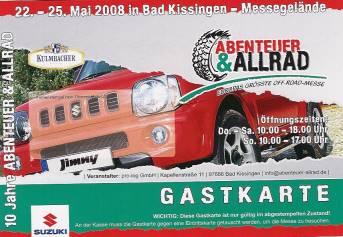 Bei der Jubiläumsmesse, der 10. "Abenteuer & Allrad 2008" in Bad Kissingen, waren wir wieder dabei, unser Bericht dazu hier!
