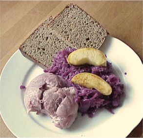 Wie wir feststellten, liegt die Spezialisierung des Angebotes vornehmlich auf dem "fleischlichen" Bereich, bietet also für Vegetarier entsprechend weniger. Aber im Angebot sind auch ein vorzügliches Sauerkraut und Blaukraut (oder Rotkohl wie es in den nördlicheren Regionen unserer Republik heißt).
