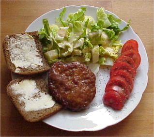 Kurze Zeit später haben wir uns an die Frikadellen und den Leberkäs gewagt - diesmal mit Salat. Und auch hier sind wir der einstimmigen Meinung: Das schmeckt lecker!