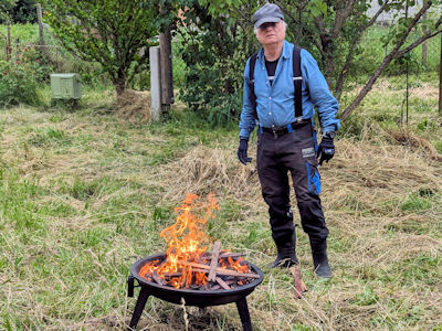 Wieviel Feuer darf unter den Topf, damit nicht sofort alles anbrennt? Eigentlich muss das Feuer so geregelt werden, dass der Eintopf leicht vor sich hin simmert und nicht wie Wäsche kocht. Im letzten Jahr war festzustellen, dass die zur Verfügung gestellten Holzstücke ziemlich groß sind, also sollte man schon mal Holzspalten mit der Axt üben, damit es dann professionell aussieht ..?