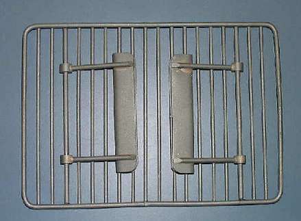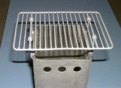 Auf die Nachfrage nach einer Möglichkeit zu Grillen habe ich einen kleinen, ebenfalls klappbaren, auf den Ofen aufsteckbaren Grillrost entwickelt. Damit es auch genügend Hitze zum Grillen gibt, habe ich einen nachrüstbaren zweiten Rost gebaut, der einfach eingelegt werden kann und die Entfernung von der Glut zum Grillrost halbiert ...