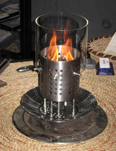 Als ich aber die Preise sah ... nee das geht preiswerter! Ich habe also meinen Ofen zum Model "Olympic" modifiziert: Brennt mit Bio Ethanol absolut geruchlos und man glaubt es kaum, es wärmt auch noch. 1 l hat immerhin einen Heizwert von gut 7 kw und die bleiben, da ja kein Kamin notwendig ist, im Raum. Es geht auch mit Spiritus, aber der riecht ja manchmal leicht, macht im Wintergarten natürlich nichts. Bei der Verbrennung entsteht nur Wärme, Wasser (ca. 0.2 l) und CO2, etwa soviel wie von 2 Kerzen. Also alles im ungefährlichen Bereich und noch ein Luftbefeuchter dazu.