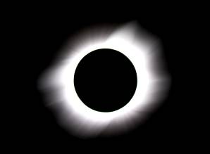 Noch bevor die Sonne ihren höchsten Stand erreicht, dimmt eine geheimnisvolle Kraft das Umgebungslicht wie im Kino herunter. Jubel und Jauchzen: Wie ein schwarzes Auge, umgeben vom hellweißen Lichtkranz der Korona, der äußersten Atmosphärenschicht der Sonne, steht die vom Mond bedeckte Sonne am Himmel. Schon mit bloßem Auge sind Strukturen zu erkennen und im Fernrohr zeigt sich ein feingliedriges Strahlengeäst, das durch Magnetfelder auf der Sonne in seine Bahn gezwungen wird. Der Planet Venus ist hell strahlend am Himmel zu sehen.