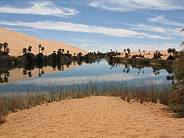 Nach einem wohlverdienten Ruhetag sind wir nach Norden unterwegs, in Richtung des weltberühmten Wau en Namus. Über den Rand des "Mückenkraters" blickt man in eine kilometergroße Senke. In feinen Blautönen schimmert die Wasseroberfläche aus mehreren Kraterseen. Auf tiefschwarzem Sand umrunden wir dieses Naturwunder und steigen zu Fuß in das riesige Kraterloch des erloschenen Vulkans.