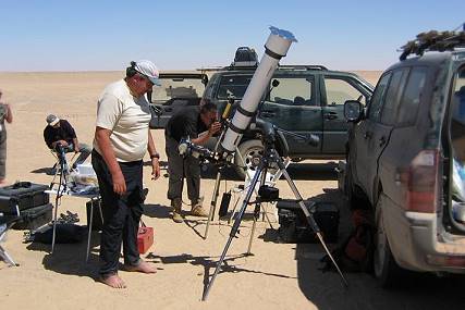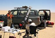 Die optimale Wetterprognose für das Zielgebiet, eine relativ lange Totalitätsdauer von 4 Minuten und die landschaftliche Schönheit der Wüste waren uns eine anstrengende Reise wert. Wegen des Fehlens jeglicher touristischer Infrastruktur in Libyen schlossen wir uns der organisierten Wüstenexpedition von Saro in Rosenheim an. Voraussetzung für die Teilnahme war ein Geländewagen und drei Wochen Zeit für die geplante Fahrtstrecke von 7000 Kilometern ...