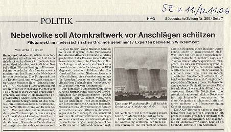 Wo einerseits schon seit Jahren (wie man weiß) eine Sicherheit sogar bei Abstürzen von Linienfliegern direkt über Atomkraftwerken besteht, muss man wohl zu Recht Schlimmes befürchten, wenn sich ein solches Kraftwerk nun innerhalb von Sekunden überraschend einnebeln und vielleicht sogar aus dem Staub machen soll. Was also wird hier tatsächlich gespielt?