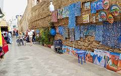 In Tanger Med trennen wir uns in zwei Gruppen: Während drei Fahrzeuge am Hafen übernachten und am nächsten Tag eine touristische Route Richtung Königsstädte beginnen, fahren Roland und ich etwa 85 km bis Asilah an der Atlantikküste, wo Arno und Gabi auf dem Campingplatz auf uns warten. Den nächsten Vormittag verbringen wir mit Einkäufen und Erkundungen in der hübschen, von modernen Künstlern mitgestalteten Altstadt und den lebhaften Märkten, den Souks dort. Nachmittags nehmen wir den Kampf mit den steifen Atlantikwellen auf und sind nach etwa einer Stunde Springen, Tauchen und Wellenreiten angenehm müde. Ab morgen wollen wir Arno folgen, der als Kenner von Marokko eine Rundtour durch das ganze Land mit allen wichtigen Punkten ausgearbeitet hat.