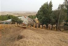 Innerhalb des antiken Steinkreises hat sich einst ein Berberfürst einen riesigen Grabhügel errichtet und in der Neuzeit sind Slum-ähnliche Hütten bis auf wenige Meter an den Kreis herangebaut worden - der reinste Kulturfrevel. Man stelle sich so etwas im südenglischen Stonehenge vor: Undenkbar! Aber Kultur begann hier erst mit dem Propheten - meinen die Marokkaner ...