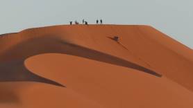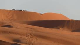 Die Aussicht von der Dachterrasse ist super, tagsüber ziehen Kamelkarawanen mit Touristen an uns vorbei und etwa zwei Stunden vor dem Sonnenuntergang beginnt die große Motorshow. Mit laut heulenden Turbinen jagen Geländewagen und Motorräder über die Dünen und die steilen Hänge hoch. Manche Motoren verhungern mitten im Hang und die Piloten haben dann riesige Probleme, ihre Gefährte wieder unbeschadet in tiefere Lagen zu bringen. Die Könige sind aber die Side-by-Side Quads, diese leichten, aber breiten Buggys mit Motoren bis über 100 PS, die es an fast jedem Camp hier zu leihen gibt ...