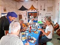 Wir haben uns gerade eingerichtet - es ist der heißeste Tag der ganzen Reise mit 35°C Lufttemperatur-, haben alle Luken und Fenster geöffnet sowie Tisch und Stühle aufgestellt, da knattert ein kleines Mofa heran und ein Berber kommt freundlich grüßend an unseren Tisch, wo wir ihm einen guten Platz und eine Dose Bier anbieten, die er gerne annimmt. Muhammed will uns unbedingt zu seiner Auberge in zwei Kilometern Entfernung einladen, er hatte uns beim Vorbeifahren gesehen und auf Einnahmen gehofft.