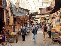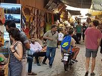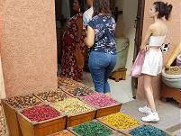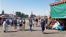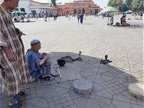 Am nächsten Morgen versuchen wir es ziemlich früh noch einmal. Wie erwartet ist fast nichts los und Parkplätze auch nahe dem Zentrum sind zu finden. Das erleichtert zwar die Besichtigung der Altstadt und der vielen Souks, aber die berühmte abendliche Atmosphäre finden wir nur andeutungsweise vor. Also der Tipp: Außerhalb parken und mit Taxi oder Bus abends in das Zentrum kommen. Die Medina und die spezialisierten Marktstraßen, Souks genannt, sind aber trotzdem interessant: orientalisch bunt und belebt. Auf dem berühmten Platz der Gehängten, dem Jamaa el Fna, ist aber neben den gelangweilten Schlangenanbetern noch kaum Verkehr ...