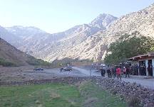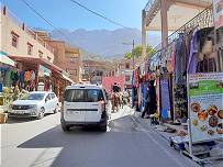Wir bleiben nur bis Mittag und beobachten eine allmähliche Zunahme des Verkehrs auf den Straßen wie auf den Plätzen und beeilen uns, hier wegzukommen. Genau nach Süden führt die R203 etwa 50 km bis zur kleinen Stadt Asni, wo wir noch ein Mittagessen nehmen und das Nötigste einkaufen. Dabei werden wir prompt von einem berberischen Silberschmied angesprochen, der sich beklagt, dass die neuerdings gute Straße zum Jebel Toubkal das lukrative "Touristen Geschäft" in das 15 km entfernte Imlil verlagert hat. Kaufen wollen wir seine dürftigen Produkte nicht, aber mit einigen Dirham Trinkgeld versuchen wir schnell davon zu kommen. Lessons Learned: Gib nicht Geld ohne Gegenleistung - der Aufenthalt dauert nämlich damit länger als geplant, bevor es die 15 km nach Imlil hochgeht, dem Bergsteigerdorf am Fuße des Toubkal. Die Suche nach einem Stellplatz in Imlil selbst bleibt zwar ohne Erfolg, aber wir machen dabei wieder einen Touristenfänger auf uns aufmerksam.