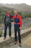 Früh am nächsten Morgen klopft 30 Minuten vor der vereinbarten Zeit Guide Muhamed an unser Auto und treibt Roland dadurch zur Eile an: So vergisst er beim Rucksackpacken seine Brotzeit und leidet später unter dem Gipfel ein wenig an Hunger und Durst, an Kälte sowieso. Wenn die beiden nebeneinander stehen, könnte man meinen, Roland würde mit seinen langen Beinen dem kleineren Muhamed auf und davon laufen. Aber weit gefehlt: Die wieselflinken Marokkaner rennen jeden Tag da hoch und haben eine Bombenkondition!
