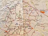 Wir machen uns kundig über den Gipfel des Siroua, der uns schon auf der Anfahrt nach Taliouine aufgefallen war und es entsteht der Wunsch, auch diesen Berg zu besuchen. Der Siroua ist 3.304 Meter hoch und vulkanisch entstanden. Wie oft bei Vulkanen (siehe auch Elbrus neben dem Kaukasushauptkamm) steht er nicht mitten in einem größeren Bergmassiv, sondern etwas abseits, in diesem Fall exakt zwischen Hohem Atlas und Antiatlas. Eine Zuordnung zu einem dieser Bergzüge ist genau genommen falsch (siehe auch die Marokkokarte oben). Er wird aber hier in Talouine dem Antiatlas zugeschlagen, wohl deshalb, weil sich das Superlativ "Höchster Berg des Antiatlas" besser vermarktet.