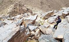 Bevor die letzten 80 Höhenmeter zur Gipfelnadel im zweiten bis dritten Schwierigkeitsgrad geklettert werden durften, musste Abdellah noch seine etwas länger andauernden Bürotätigkeiten abschließen: Die ungesicherte Kletterei in ausgesetzter Lage ist selbst für den Geübten "anregend" - bloß keinen Stein oder "Griff "ausreißen" - es wäre wohl das "Letzte Mal" gewesen. Vermutlich wird der Aufstieg bei größeren Gruppen mit Fixseilen an den zwei vorhandenen Bohrhaken gesichert.