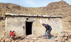 Kurz bevor ich umkehre, führt mein Pfad am Nachtlager zweier junger Studenten aus Marrakesch vorbei. Die haben grottenschlecht ausgerüstet die eiskalte Nacht in einem nagelneuen Billigzelt mit dünner Schlafunterlage ohne Schlafsack verbracht, nur mit je einer Kunstfaserdecke ausgestattet. Gegen 10 Uhr wärmen sie sich nun in der Sonne langsam auf. Wenn die beiden nicht noch eine Nacht so verbringen wollen, müssten sie sich jetzt aber langsam sputen - oder auf den Siroua verzichten.
