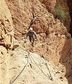 höchst ausgesetzten, aber perfekt gesicherten Klettersteig in der Todra-Schlucht hoch und bekommen dabei noch das Zuckerl einer