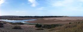 Im Rahmen von ein paar Tagen Strandurlaub nahe Sidi R´bat an der Mündung des Oued Massa, etwa 50 km Luftlinie südlich der Stadt Agadir, besuchen wir den dortigen Nationalpark Souss Massa. Hier ergießt sich der träge Fluss ins Meer, indem er unter der Sanddüne an der Flussmündung hindurchtaucht. Dieser Park beherbergt die letzte wilde Kolonie der Waldrappe, einer kahlköpfigen, durch intensive Jagd in früheren Zeiten fast ausgestorbene Ibisart. Seit über 20 Jahren werden diese Vögel dort intensiv geschützt und haben ihre Bestände in der Zeit mehr als verdoppelt auf über 200 Brutpaare und ebenso viele Singles.