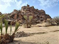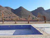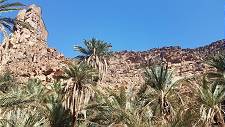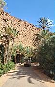 Danach folgen wir der Empfehlung von Edith Kohlbach zu einer Schluchtenrundfahrt über Ait Mansour, der herrlichen Palmenoase im tiefen Taleinschnitt eines kleinen, ganzjährig wasserführenden Baches, an dem nur der gepriesene Wasserfall ausgetrocknet ist. Die Straße ist schmal aber asphaltiert und wirklich für jedes Fahrzeug machbar - und absolut lohnend. Für die Rückfahrt Richtung Tafraoute wählen wir ab Tizerkine eine alternative Piste, die uns durch trockene Fels- und Tallandschaften zum nächsten Nachtplatz führt, wo wir die interessanteste Begegnung der ganzen Reise haben.