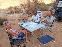 Wir sitzen noch nicht lange, als der einzige vorbeikommende PKW anhält und der Fahrer zu uns an den Tisch kommt. Gerne laden wir ihn ein bei uns zu sitzen und bieten ihm ein Getränk an. Er nennt sich Said und entpuppt sich als höchst interessanter Gesprächspartner: Er hat in Paris Wasserbau-Ingenieurwesen studiert und ist nun beruflich in der Gegend unterwegs. Mit großer Begeisterung referiert er in passablem Englisch über seine Arbeit. Wir erfahren interessante Details zur Wasserversorgung auf dem Land und in größeren Städten: