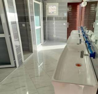 Campingplatz der Gemeinde hat saubere, praktisch neue Toilettenanlagen
