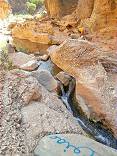 Auf dem Bild oben rechts erkennt man beim Blick in das Tal den Canyon, den wir am Nachmittag erwandern werden: Die hohen Felswände und das kleine Bächlein im Talgrund sorgen für angenehme Temperaturen. Höhepunkt sind aber eindeutig die herrlich frischen Badegumpen, die wir nach einer guten Stunde Wandern und Überklettern harmloser Felsbänke erreichen.