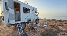 Hier trennen sich die beiden Reiseteams. Während wir über Siroua zur Todraschlucht fahren (siehe Teil 2) zieht es Sonja und Andi noch einmal ans Meer, wo sie einsame und herrlich ausgesetzte Stellplätze finden. Nach 10 Tagen treffen wir uns wieder, um noch ein paar schöne Bergpisten unter die Räder zu nehmen.