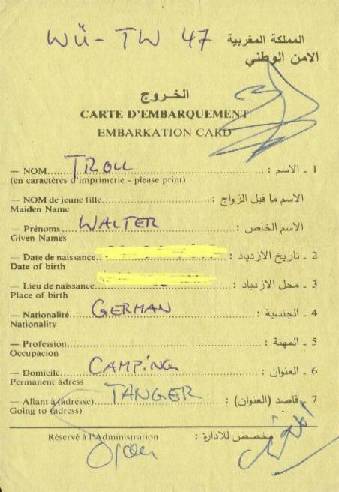 Sie bieten dir an, einen gelben Zettel für den Zoll (Carte D´Embaquement)