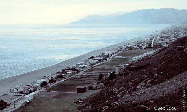 Wir lassen Tétouan also rechts liegen und fahren auf dem kurvigen Küstensträßchen weiter, bis im nächsten Dorf ein schmuckloses Camp mit obligatorischer Mauer ringsum am Weg liegt. Reingefahren, beim Patron rasch die Gebühren für eine Nacht ermittelt und einen Stellplatz unter halb vertrockneten Eukalyptusbäumen gesucht - fertig. Das Herstellen einer Stromverbindung mit einem der wenigen verfügbaren Anschlüsse - das Wort Steckdose wäre in diesem Zusammenhang nicht annähernd treffend - gestaltet sich als schwierig bis unmöglich, und nur mit dem Einsatz von Lüsterklemme und Elektro-Schraubendreher ließe es sich für alle Beteiligten einigermaßen sicher durchführen. So aber liegt es im Ermessen Allahs, das komplette Dorf in ewige Dunkelheit zu versetzen oder unser Mobil samt seiner Besatzung in Rauch aufgehen zu lassen. Keine Ahnung mehr, was ich da bei beginnender Dunkelheit verstöpselt habe, aber letztendlich ist Strom da und der Junior kann seinen Nintendo aufladen.