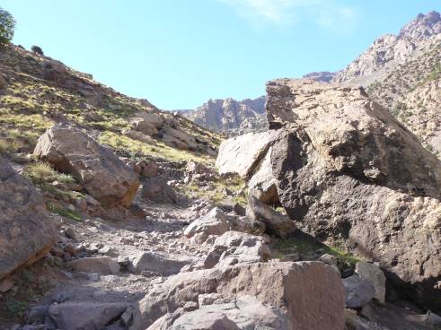 Immer wieder überholen uns die "4x4 Berbère", die schwer bepackten Maultiere. Wenn auch zur Navigation bis zur Hütte kein Führer gebraucht wird, ist es doch sehr angenehm, kein oder nur leichtes Gepäck tragen zu müssen.