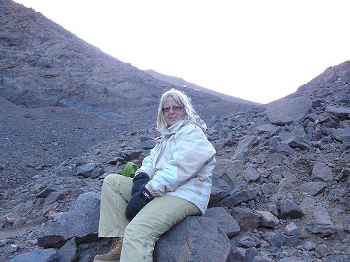 Weiter geht's, etwas weniger steil nun. Und dann endlich, in der Ferne, die Refuge! Seit Sommer 2007 gibt es sogar zwei davon, das Material für das große, massive Haus musste komplett auf Maultieren herbei geschleppt werden, abzüglich der Steine natürlich, davon gibt es reichlich.