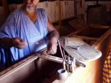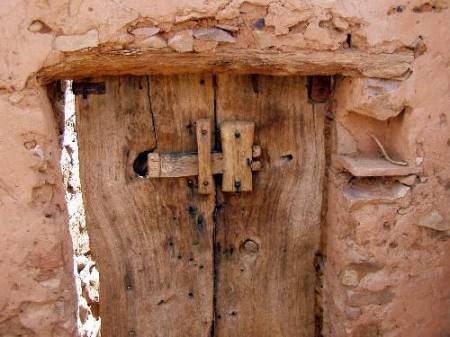 Anschließend folgen wir dem Führer zur alten Moschee und werden dort freundlich begrüßt. Die Türe aus dem Mittelalter hat sogar noch ein Schloss aus alten Tagen, der Schlüssel dazu sieht aus wie eine überdimensionale Zahnbürste mit Stahlborsten und wird seitlich in den Holzriegel gesteckt, der die beiden Türflügel verschließt. Mit Rütteln und Schütteln greifen die Metallzapfen des Schlüssels in die Passungen des Schlosses und der Riegel lässt sich öffnen.