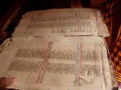Bereitwillig bekommen wir die in Leder gebundenen Originalschriften nebst Schreibutensilien gezeigt: Da gibt es ein Tintenfässchen aus Metall, in dem die Tinten Schwarz, Blau, Rot und Gold verwendet wurden, der Muezzin öffnet seine Bücher und lässt uns ohne Blitz fotografieren, mir stockt fast der Atem! Er zeigt uns Originalaufzeichnungen aus dem 13. Jhd. mit astrologischen, astronomischen und mathematischen Berechnungen sowie Kalligraphie, farbig geschriebene Lyrik ...
