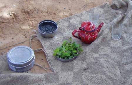 Schon bei unserer Einreise in Tanger wurden wir damit begrüßt, dass heute der Ramadan beginnt! Praktisch bedeutet das, dass Moslems tagsüber fasten - auch Trinken und Rauchen gehört dazu. Uns Ungläubigen gibt man allerdings einen Tee, der auf die traditionelle Art hergestellt wird: Schwarzer Tee wird aufgebrüht und mit sehr viel Zucker gesüßt. Dann wird der Teekessel mit frischer Minze aufgefüllt. Nach dem Ziehen wird der Tee im hohen Bogen mindestens 10-mal ins Glas und wieder zurückgeschüttet. So wird der Tee mit viel Sauerstoff angereichert, was den Geschmack verbessert. Diese braune Brühe hat es in sich, man fühlt sich nach dem Genuss der üblichen drei Gläschen wie beschwipst. Aus diesem Grund nennen ihn die Einheimischen auch Whisky Mauretania, richtig heißt er Nana ...