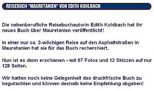 Und in einem anderen Wüstenforum wollte man für den Hinweis auf das Buch (für einen guten Zweck) Gebühren erheben wegen kommerzieller Werbung und Benutzer vermeldeten verschwundene Beiträge nach erfolgter Kritik ...