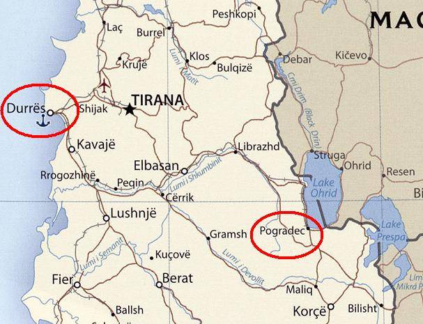 Am 24.11.2010 ging es über Ancona mit der Fähre nach Durres. Bereits die nächtliche Anreise zum albanischen Stützpunkt in Pogradec wurde zum Erlebnis: Abgerissene Stromleitungen, Erdrutsch und Steine auf der Fahrbahn. Baustellensicherung - Fehlanzeige. Abgesehen von den Hauptrouten gibt es weder Mittelstreifen noch Begrenzungspfosten oder Leitplanken oder Straßenbeleuchtung ...