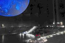 Für uns "Versager" in dieser Hinsicht bietet sich derzeit die einzige Möglichkeit, doch noch in den Genuss des einmaligen Anblicks zu kommen und die Erdoberfläche mit all ihrer Wolkendynamik und ihren Lichterscheinungen von außerhalb der Atmosphäre zu bestaunen: Für bescheidene 10 Euro Eintritt kommt man in Oberhausen in das Innere eines Gasometers, dem ehemaligen Speicher für Stadtgas, der inzwischen als riesiger Ausstellungsraum dient.