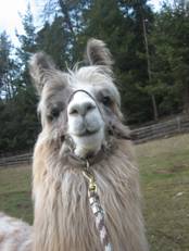 Uns, vor allem aber den Lamas, wird ein herzlicher Empfang bereitet: Natürlich wird die übliche Frage nach dem Spucken gestellt. Korrekt gehaltene Lamas spucken aber nur untereinander, beispielsweise zur Wahrung der Rangordnung.