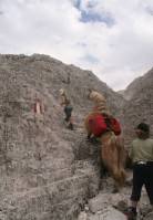 Unser Weg führt uns heute zur Langen Alm mit den drei Seen und zum vorzüglichen Joghurt und dem Frischkäse, die von der Hüttenwirtin hergestellt werden. Wir haben eine ausgezeichnete Sicht auf die Drei Zinnen, wo wir mit dem Feldstecher zwei Bergsteiger beim Durchklettern der etwa 500 m hohen senkrechten Wand beobachten können ...