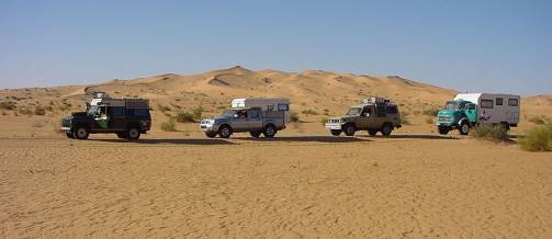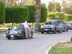 Da hat sich doch die gute SAHARA-Reise-Gemeinde immer wieder über die Leute hergemacht, die mit einem gut ausgerüsteten Geländewagen die Länder südlich des Mittelmeeres bereist haben. Man würde mit dem zur Schau gestellten Reichtum Überfälle ja geradezu provozieren. Für all diese Kritiker scheint nun ein neues Zeitalter angebrochen zu sein: Im Moment ist eine Porsche-Karawane unterwegs. Der klassische 911 ist dabei und auch das Design-Gruselstück CAYENNE (Welcher ja eigentlich nur ein hässlich gemachter & überteuerter VW-TOUAREG ist).