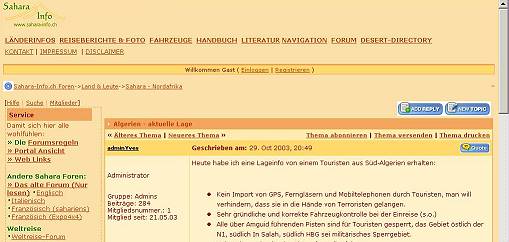 1. Nachtrag, Juli ´05: Good Bye Sahara-Forum ...