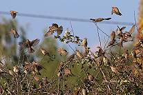Im Laufe der Jahre und insbesondere, wenn man mit dieser Leidenschaft schon in Jugendjahren angefangen hat, kommen einige Fertigkeiten hinzu: Schon im Augenwinkel registiere ich Vogelbewegungen, die meiner Begleiterin überhaupt nicht auffallen und mit dem Fernglas habe ich das Flugobjekt wesentlich schneller als ein Ungeübter eingefangen. Die Stimmen und Gesänge vieler Vögel werden allmählich immer vertrauter und der Erfolg beflügelt wie überall die Leidenschaft. Wenn auch vor allem die Beobachtung einer Rarität jeden Birder aufputscht, so kann man doch auch lange vor einem Busch voller Spatzen stehen und dem lauten Treiben der lustigen Gesellen zuschauen ...