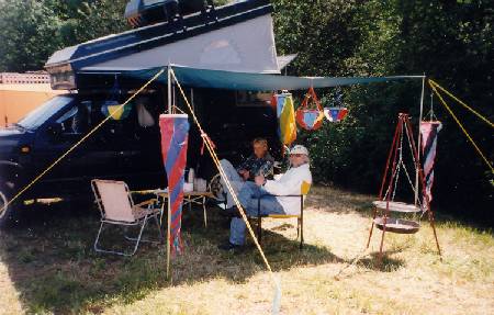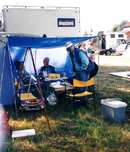 Wir beschließen die Gunst des Wetters zu nutzen und veranstalten einen Grillnachmittag, an dem sich - wie man später wissen wird und das Bild oben rechts zeigt - offensichtlich jede Menge künftiger Autoren des Explorer Magazins treffen, die offenbar auch alle Besitzer eines CB-Funker QRZ (Rufzeichens) sind. Im Bild von links nach rechts, unseren Lesern bereits bekannt: