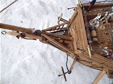 Doch ab wann gab es eigentlich solche Steuerräder? Im 17. Jahrhundert zur Zeit unserer BATAVO aber auf keinen Fall! Nachforschungen in dieser Angelegenheit führten sehr schnell zu einem echten Fachforum, in dem Experten aus dem Schiffsmodellbau über dieses Thema diskutierten oder auch zu einem Geschichtsforum, wo die Frage behandelt wird. Zusammenfassend kann man daraus entnehmen, dass es solche Steuerräder generell erst ab dem 18. Jahrhundert gab, also deutlich nach unserer BATAVO. Zu deren Zeit kam dafür nur eine Lenkung in Betracht, die im Schiffsinneren über einen sogenannten "Kolderstock" erfolgte, wie das z.B. auch beim berühmten Segler VASA der Fall war.