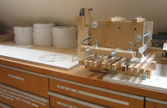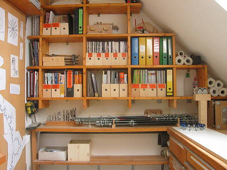 In einer anderen Ecke ein aufgeschlagener Ordner: Dort sind alle Maße versammelt, die ich während der Fertigung so brauche, und alle möglichen mehr oder weniger aktuellen Zeichnungen und Notizen. Die Maße habe ich über ein kleines selbstgeschriebenes Programm ermittelt ...