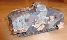 Außerdem drängte nun auch die Oberste Heeresleitung (OHL) das Preußische Kriegsministerium zum Bau eines Panzerwagens, was Ende 1916 zur Beauftragung der "Abteilung 7 Verkehrswesen (A7V)" zum Bau eines "Panzerkampfwagens" mit dem Codename "A7V" führte. Erste fertige A7V-Panzer, von dem wir ebenfalls ein Modell haben, waren jedoch erst Ende Oktober 1917 verfügbar. Insgesamt wurden bis zum Jahr 1918 nur rund 20 Panzer dieses Typs gebaut, denen auf alliierter Seite im Sommer desselben Jahres über 600 Tanks gegenüberstanden.