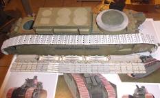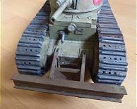 Nachdem sich die Ursache für den vermeintlichen Irrtum herausgestellt hatte, nämlich die Mitberücksichtigung der optionalen Teile am Heck und Bug des Panzers bei der Gesamtlänge, haben wir diese Teile natürlich in Eigenregie ergänzt, weil sie beim Modelik-Modell nicht vorgesehen sind. Somit verfügt unser Panzer 97 "Normandie" auch noch über ein Stützgestell am Heck sowie einen "Rammbock" am Bug, einen Frontschutz bestehend aus einem Querträger.