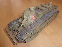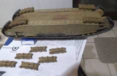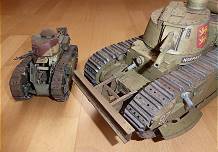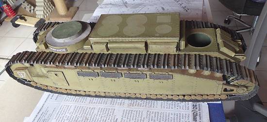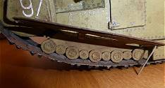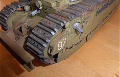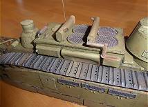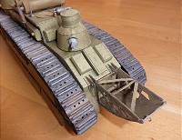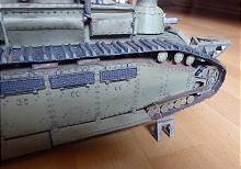 Die Türme des Panzers wurden drehbar gestaltet und auch die Seitenschürzen können ähnlich wie beim deutschen Panzermodell A7V seitlich hochgeklappt werden, womit ein Blick auf die Ketten darunter möglich ist.