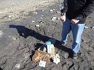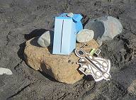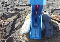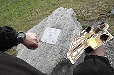 Außer unserem Sextanten und dem "Chronometer" haben wir noch eine selbstkonstruierte "Sonnenuhr" dabei, die mit einem Kompass Richtung Süden ausgerichtet wird und über einen schmalen Schlitz verfügt, der mit seinem Lichtstrahl zusätzlich den genauen "wahren Mittag" anzeigen helfen soll. Kein Mensch ist außer uns in der einsamen Bucht, als es schließlich so weit ist: Gegen 13:09 Uhr UTC, die hier bei einem Zeitunterschied von einer Stunde zu Deutschland gilt, steht die Sonne am höchsten. Mit dem Sextanten wird nun eine Höhe von 51° 55´gemessen und unser mitgebrachter "Chronometer" zeigt 13:44 Uhr an - nun haben wir alle Daten, die wir brauchen ...